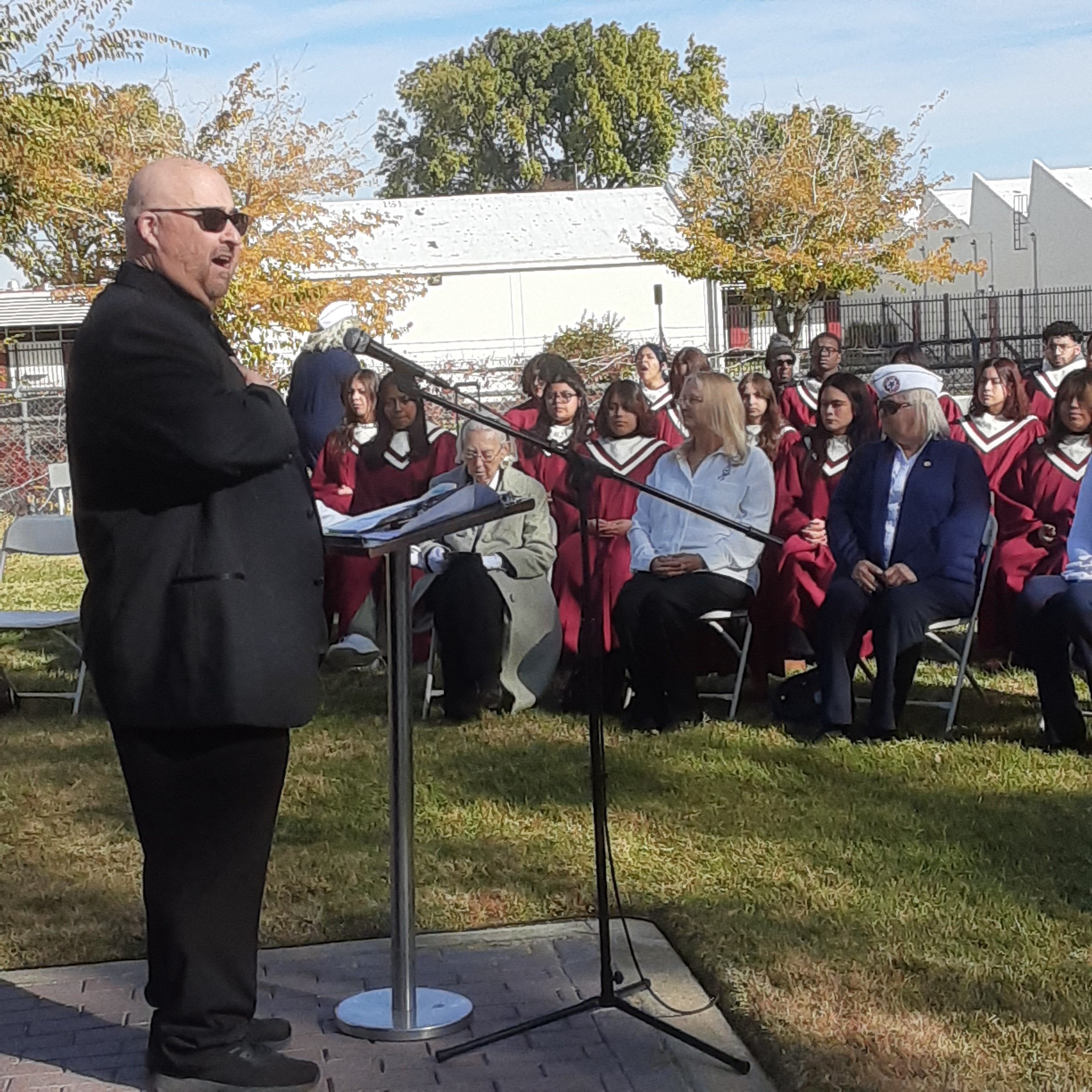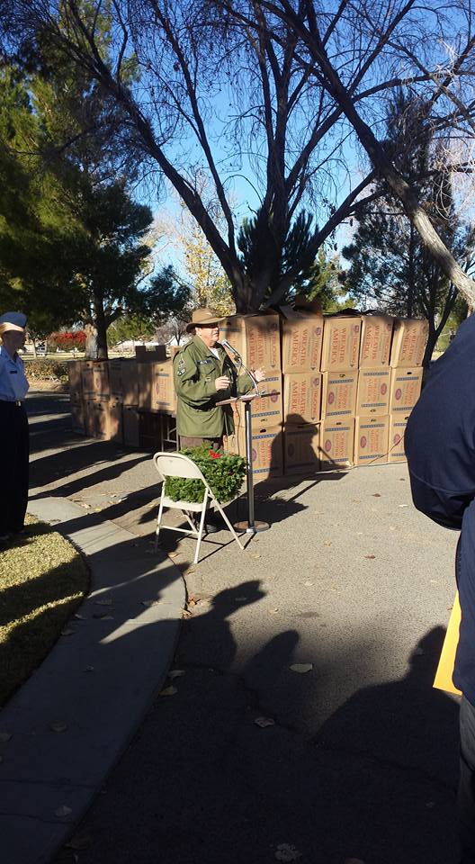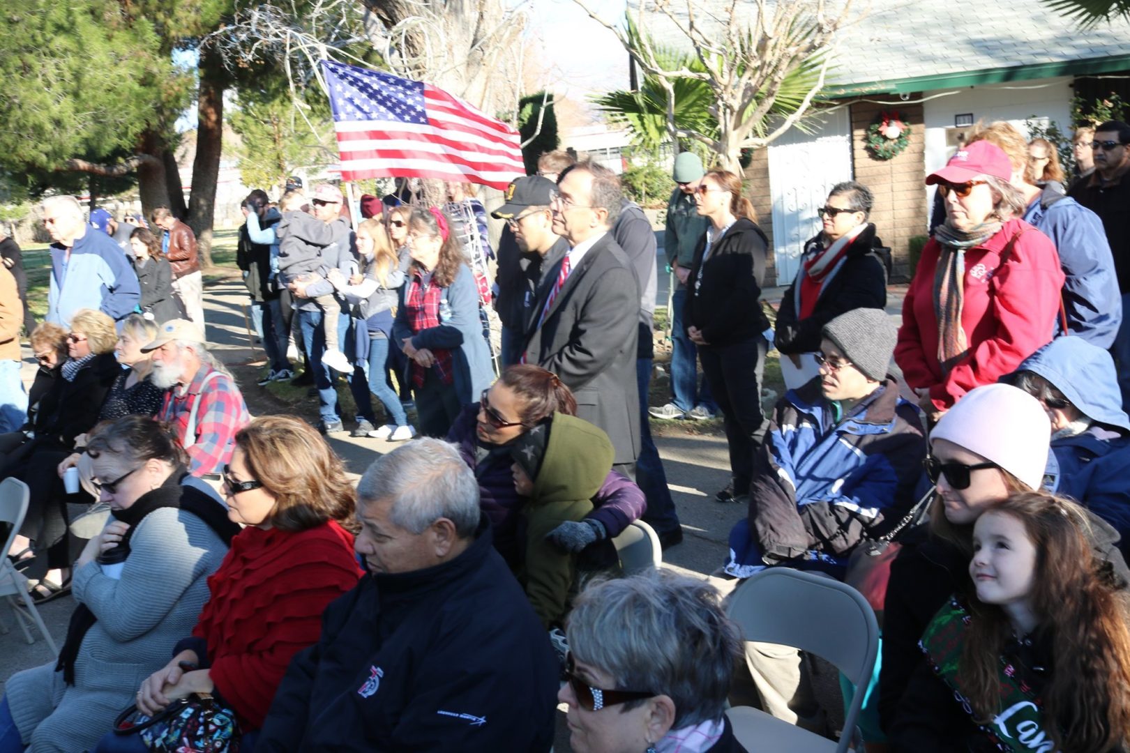 Lancaster City Councilman Ken Mann speaks to those gathered for a luminary ceremony, Dec. 14 at Lancaster Cemetery in Lancaster, Calif. Volunteers adorned the graves of nearly 100 veterans buried in the cemetery. The candlelight display was part of a ceremony in conjunction with Wreaths Across America that remembers the fallen and honors those who served in the military. The evening lighting was spearheaded by Mann, who has sponsored the event for many years in honor of his late father, Clifford Mann, a World War II veteran and B-17 pilot.