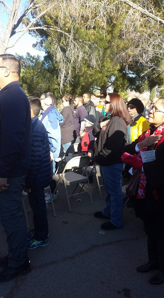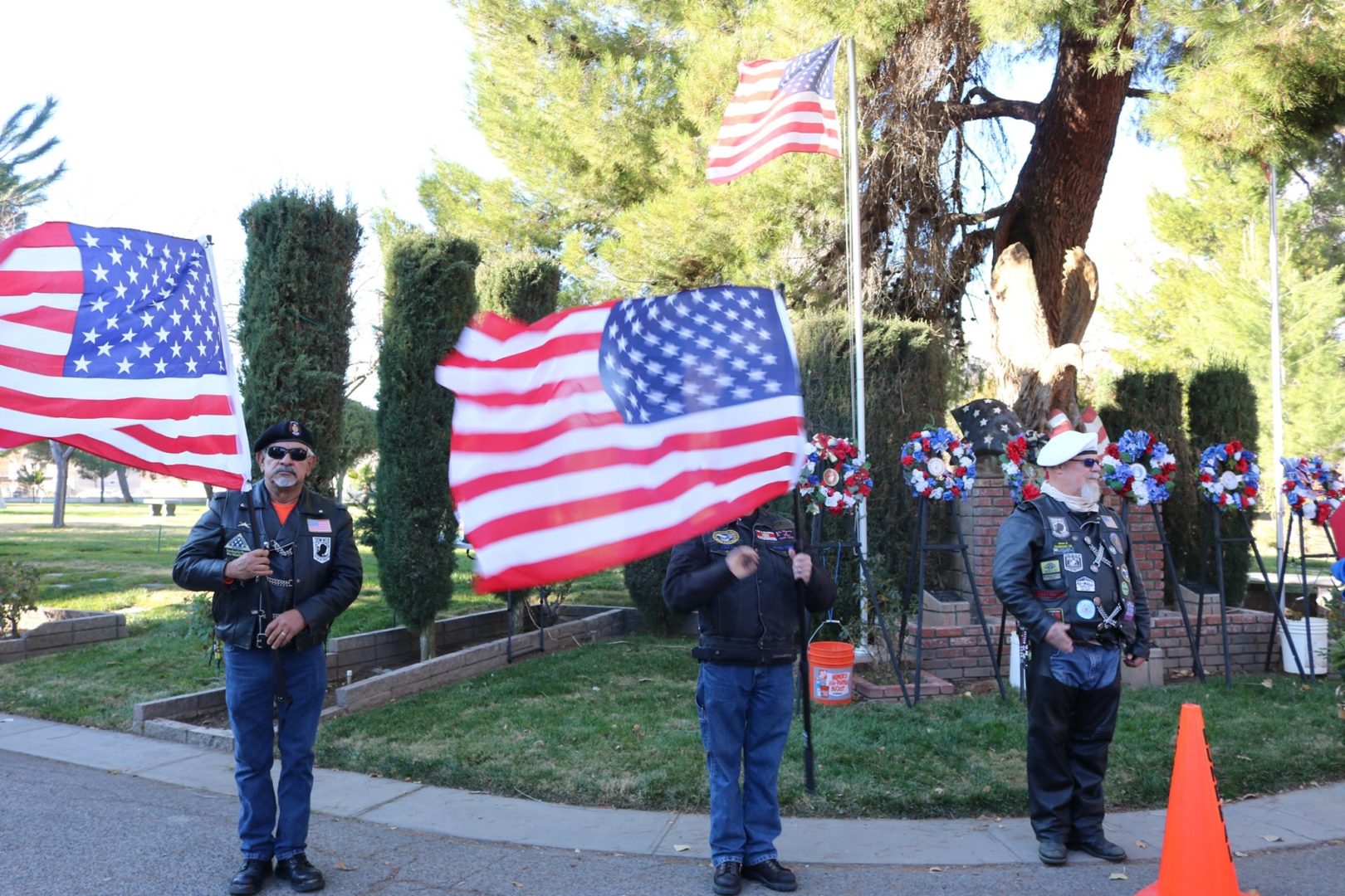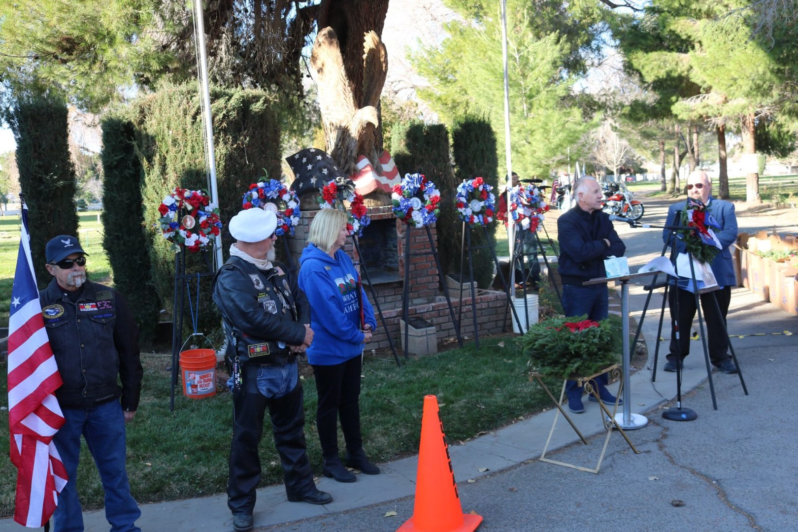 Lancaster City Councilman Ken Mann speaks to those gathered for a luminary ceremony, Dec. 14 at Lancaster Cemetery in Lancaster, Calif. Volunteers adorned the graves of nearly 100 veterans buried in the cemetery. The candlelight display was part of a ceremony in conjunction with Wreaths Across America that remembers the fallen and honors those who served in the military. The evening lighting was spearheaded by Mann, who has sponsored the event for many years in honor of his late father, Clifford Mann, a World War II veteran and B-17 pilot.