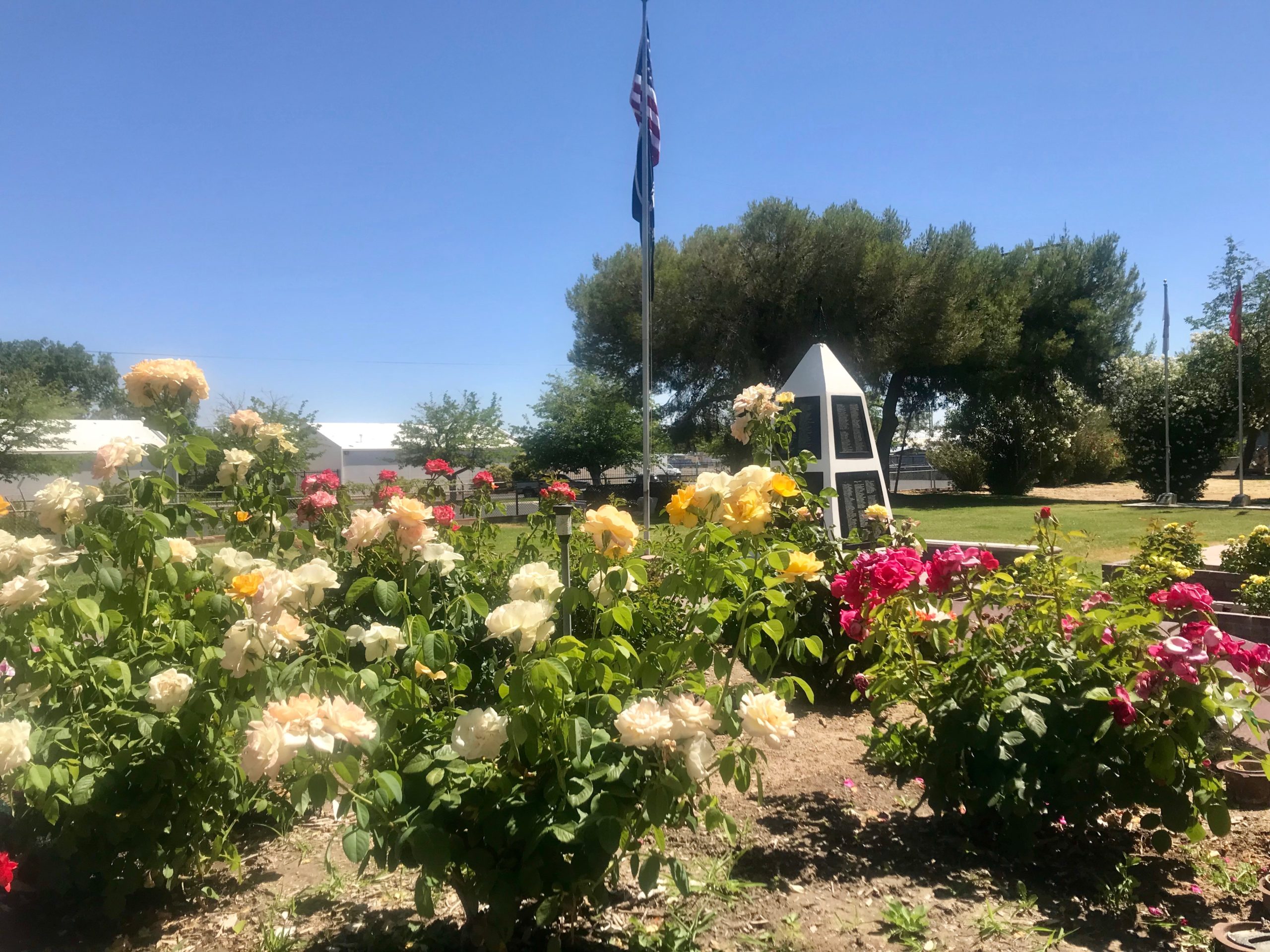 Lancaster Cemetery Veterans Court of Honor with roses on top of niches
